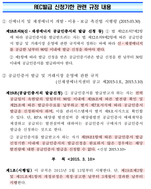 전력공급일 말일부터 90일 안에 rec(공급인증서)를 발급 하지 않으면, 익일 자동 말소 한다고???