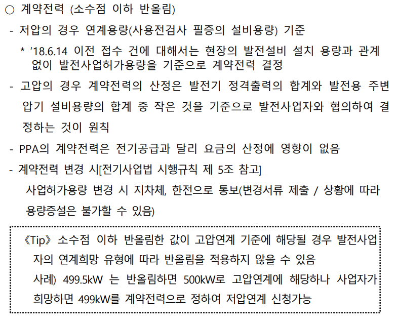 얼마 전 특정 지역에 499.8kw를 설치 한 적이 있는데, 감리나 전기안전관리자도 이것을 반올림 해서 고압으로 보느냐, 저압으로 보느냐 말이 많았다. 사실, 따지고 보면, 설계도면을 보면 고압인지 저압인지 간단히 알 수 있느나, 한전에서 제공하는 가이드북을 보면, 이 내용을 간단하게 일축하고 있으니 고민 없이