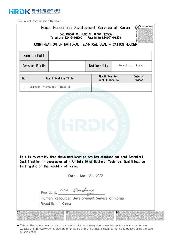 세삼스럽게 왜 오래전 취득한 정보처리기사 이야기를 꺼내냐면, 요즘 또 하도 심심해서 무슨 자격증을 딸까 서치 중이다 아직까지는 정보처리기사가 먹어준다는 것에 놀랍고, 얼마전 난이도가 갑자기 헬이 되어, 대기업 다니는 분도 따기 껄끄럽다는 후기를 봐서, 여러분께 필자도 땄다는 것을 말 해 줄 겸사 겸사 작성하게 되었다.